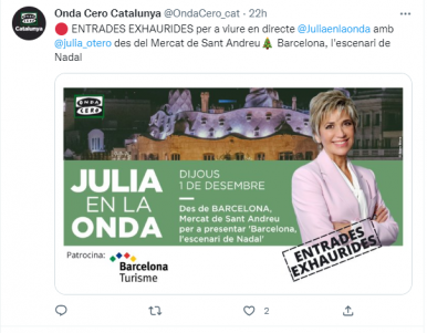 Impacte a través d'anuncis no digitals i publicitat exterior: premsa escrita, espots televisius, mencions a ràdio i pantalla exterior